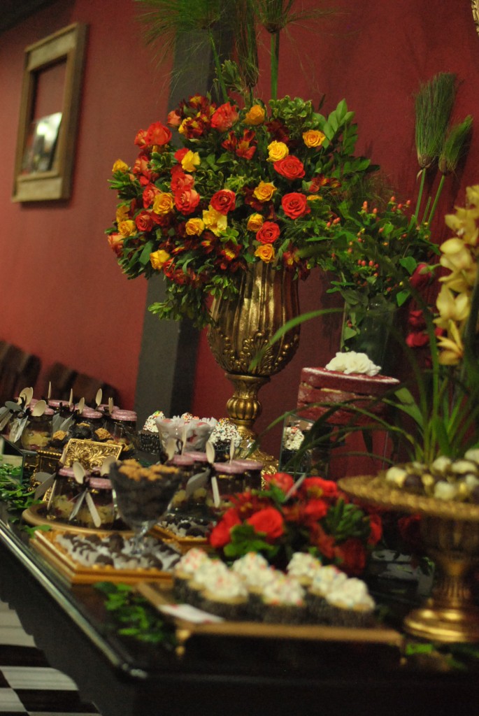 A Mari, pensou em tudo, inclusive nesse tapete xadrez que combinou com nosso dropbox. Os espelhos, objetos e a disposição dos doces na mesa, tudo foi feito e pensado por ela. Nosso ambiente ficou maravilhoso.