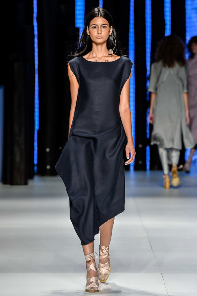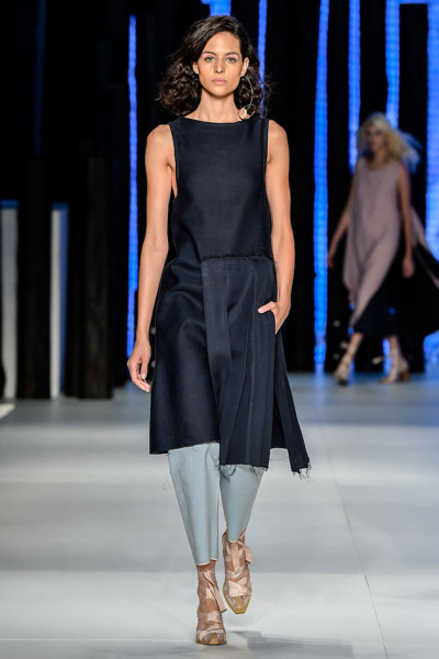 Parece uma moda despretensiosa da NotEqual. Como quem brinca com linhas e tecidos… Mas seu trabalho demonstra uma técnica afiada, com conhecimento de corte costura e personalidade.