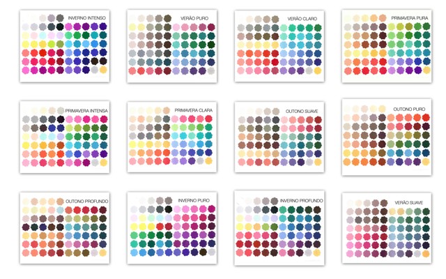 Cada um desses grupos se dividem em mais três grupos com cores distintas, tendo assim 12 grupos de cores pessoais. A grande vantagem de definirem-se suas cores pessoais é que você terá maior facilidade na hora de montar seu guarda roupa. Pois as cores pessoais são utilizadas tanto no vestuário, nos acessórios e até na maquiagem.