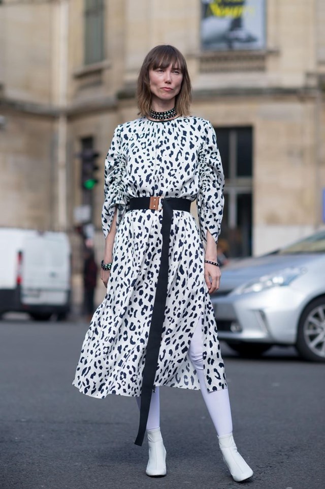 - O cinto cria um corte horizontal na silhueta partindo-a ao meio, de forma a achatar sua altura. A não ser que ele seja da mesma cor ou estampa da roupa;