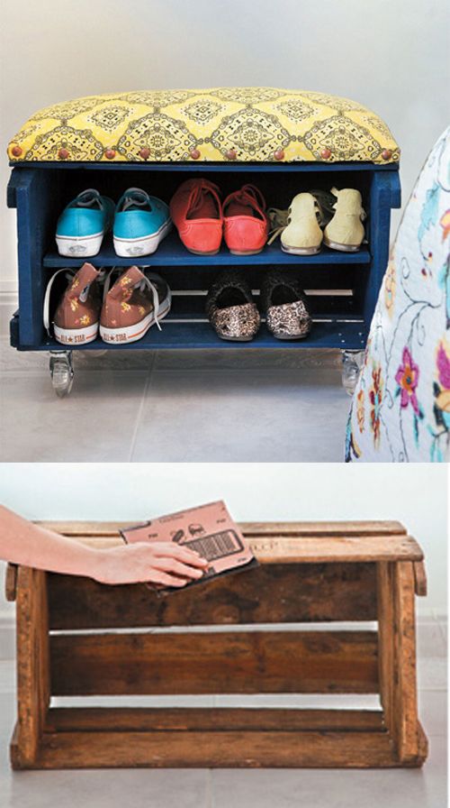 Inclusive você pode fazer sua própria sapateira fazendo reuso de materiais como caixas de madeira. Você pode acessar o DIY na minha pasta Home Decor do Pinterest, aqui.
