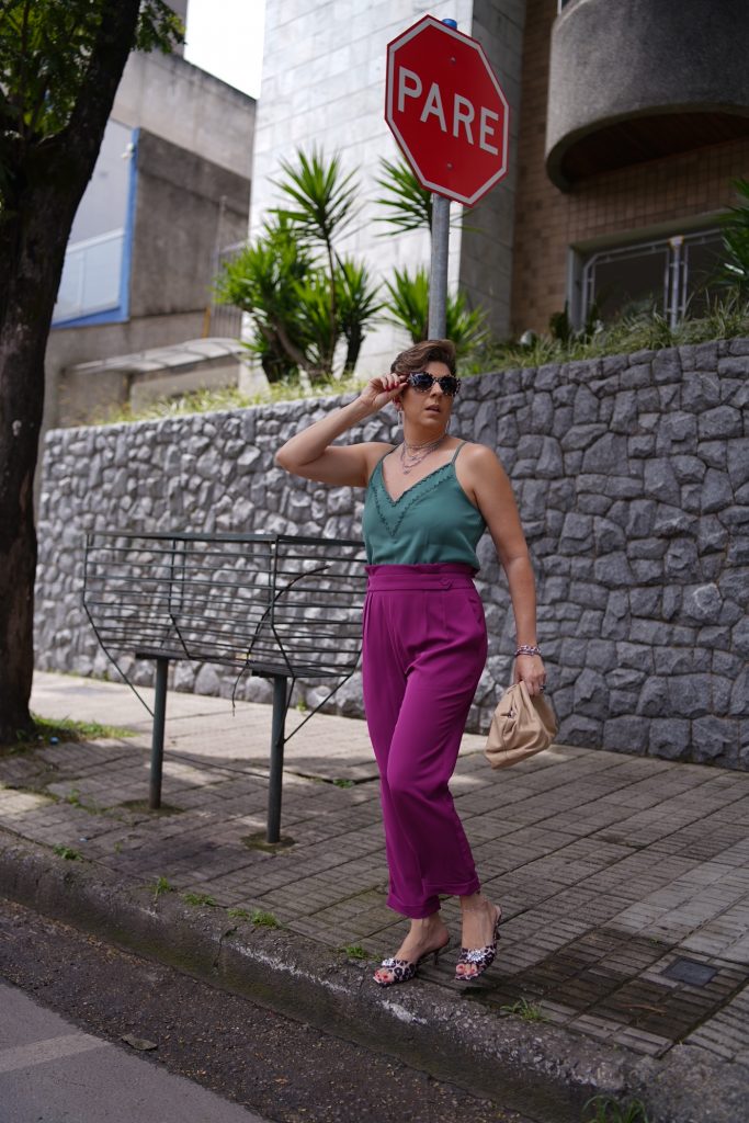 Combinação de cores contrastantes é uma das minhas preferidas. Como amo falar sobre cores. Todo o poder de comunicação visual que as cores conferem à imagem pessoal me fascina.